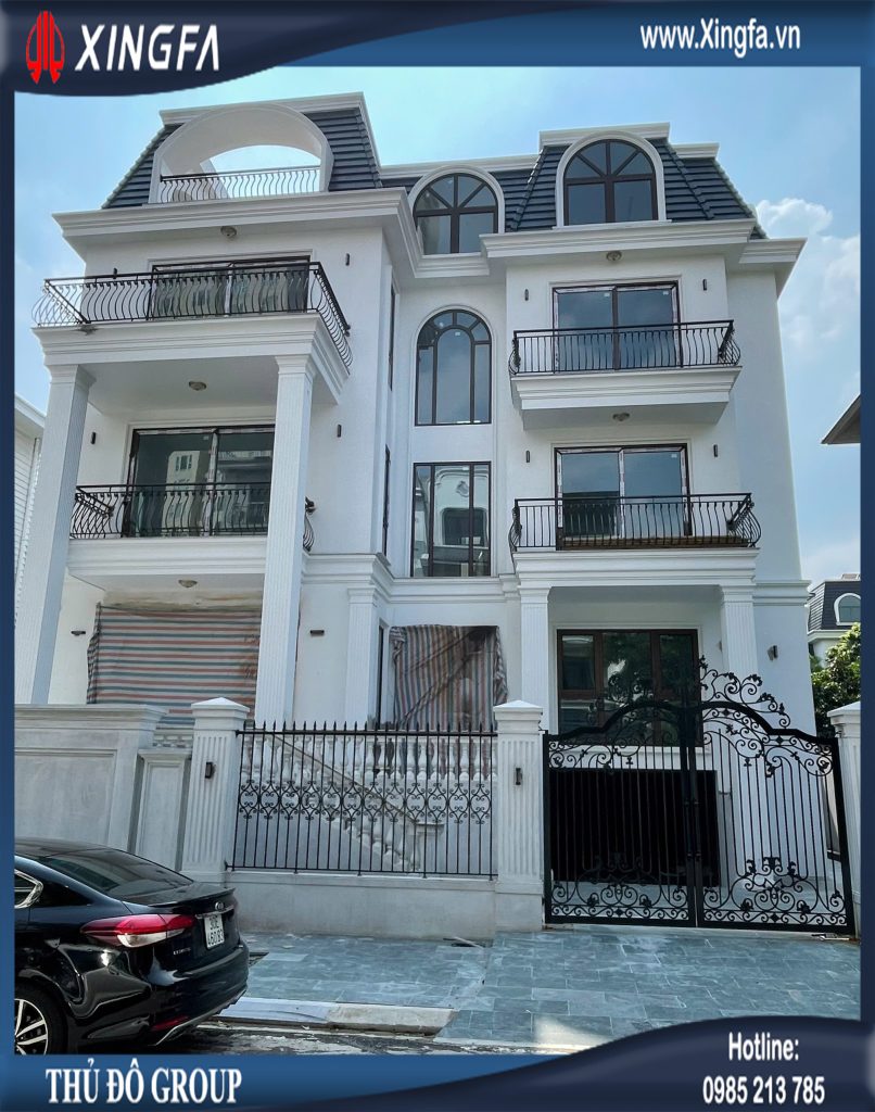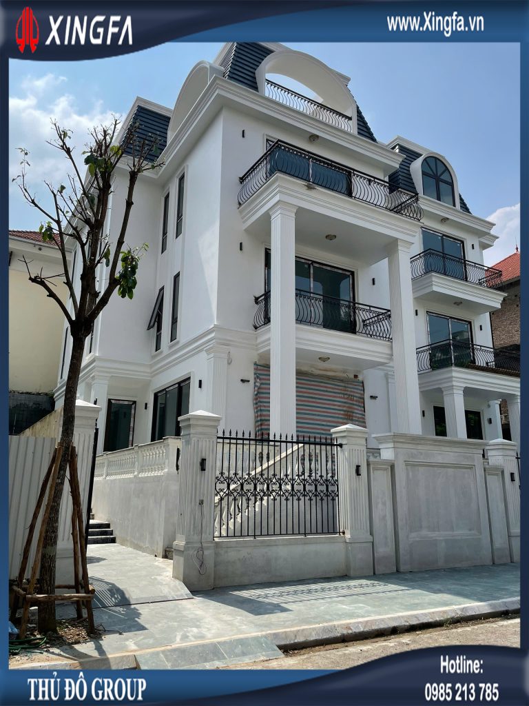 Thủ Đô Group thi công lắp đặt công trình biệt thự sử dụng sản phẩm cửa nhôm Xingfa Class A nhập khẩu chính hãng (mầu ghi xám đá) tiêu chuẩn Châu Âu + phụ kiện Cmech cao cấp (Mỹ) + kính hộp 2 lớp cách âm cách nhiệt, chống nóng chống ồn tại KĐT Splendora, Bắc An Khánh, Hoài Đức, Hà Nội