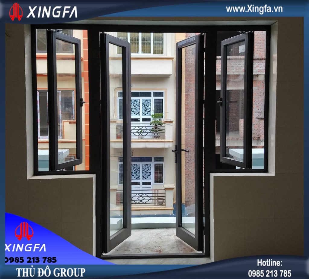 Hình ảnh cửa đi và cửa sổ mở quay 2 cánh nhôm Xingfa nhập khẩu chính hãng