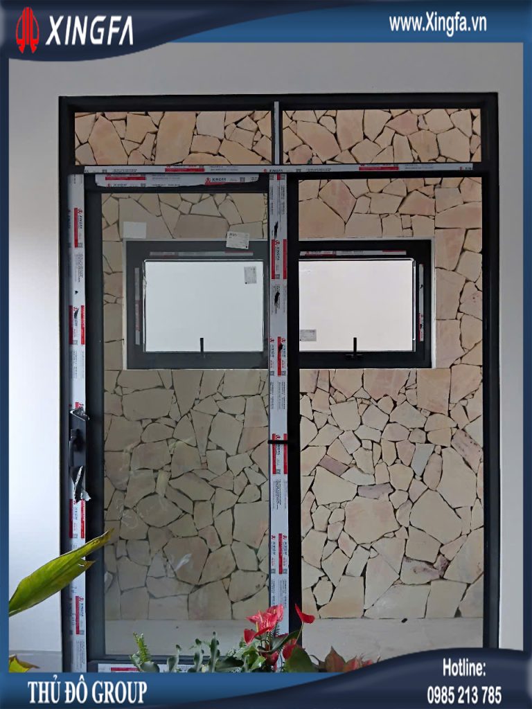 Cửa đi quay 2 cánh kèm vách kính cố định nhôm Xingfa nhập khẩu chính hãng 100%