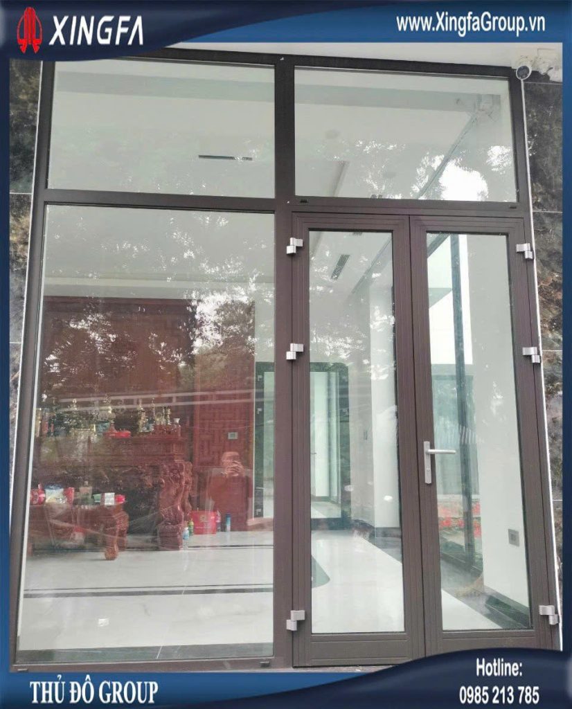 Hình ảnh cửa đi 2 cánh kết hợp vách kính cố định nhôm Xingfa hệ 55 dày 2.0mm