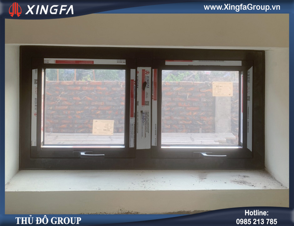 Hình ảnh bộ cửa sổ mở hất 2 cánh nhôm Xingfa hệ 55 độ dầy 1.4mm