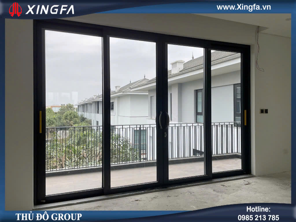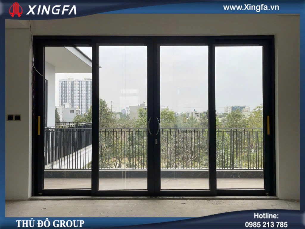 Mẫu cửa đi trượt 4 cánh nhôm Xingfa Class A được sử dụng làm cửa đi ra ban công