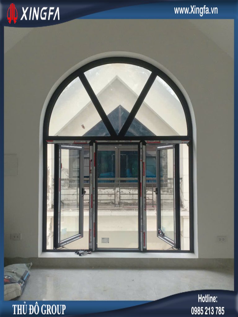 Hình ảnh cửa sổ mở quay 2 cánh kết hợp vách vòm nhôm Xingfa