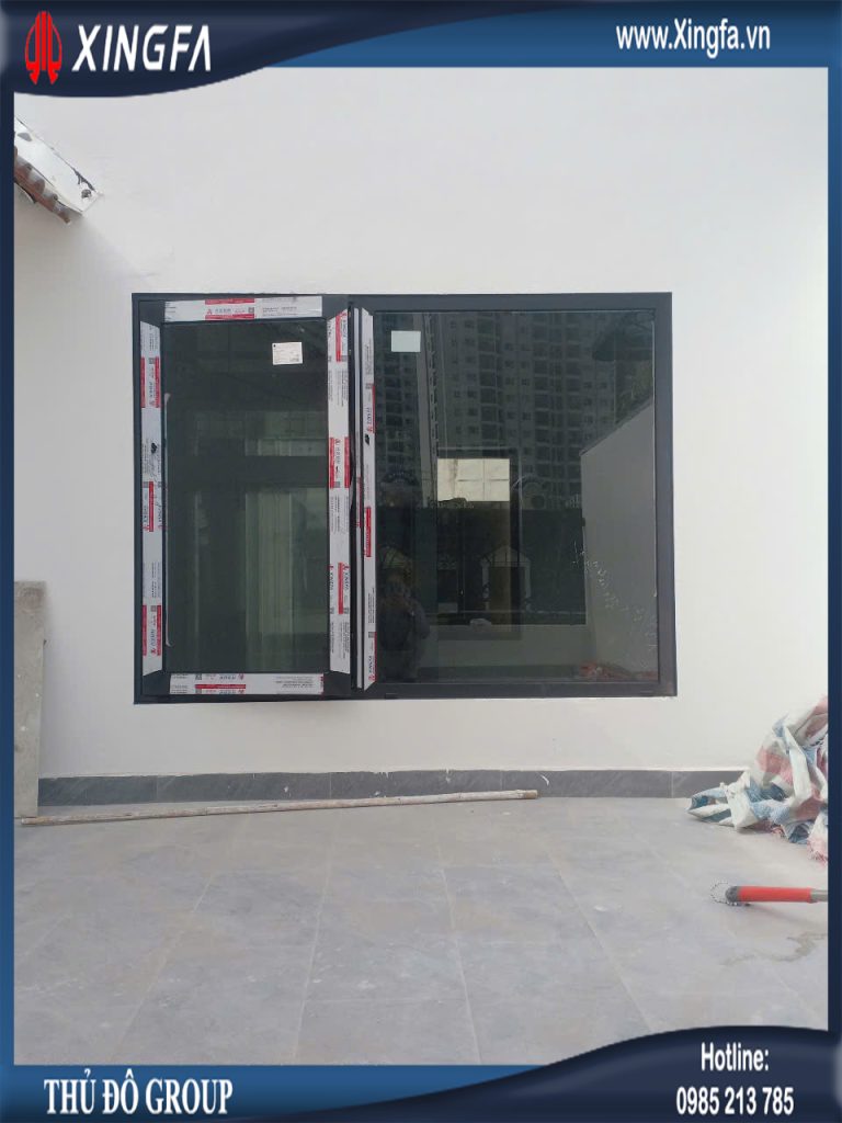 Hình ảnh cửa sổ mở quay 2 cánh nhôm Xingfa hệ 55 độ dầy 1.4mm
