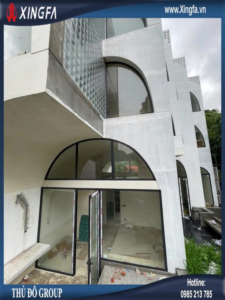 Hình ảnh vách kính cố định uốn vòm nhôm Xingfa nhập khẩu chính hãng
