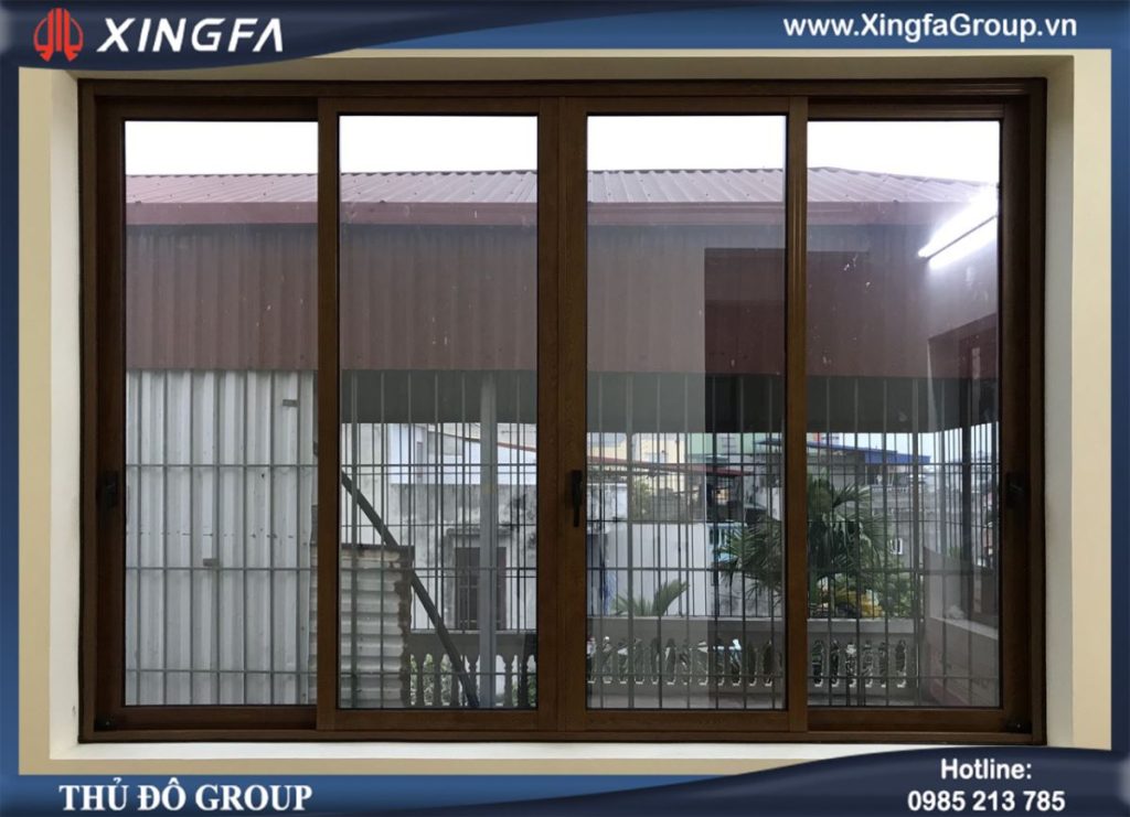 Hình ảnh bộ cửa sổ mở trượt 4 cánh với nhôm Xingfa hệ 93 bản nhỏ