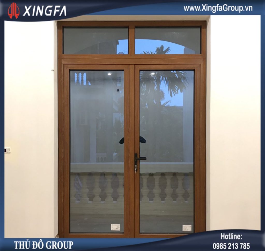Hình ảnh cửa đi mở quay 2 cánh nhôm Xingfa sử dụng nhôm hệ 55