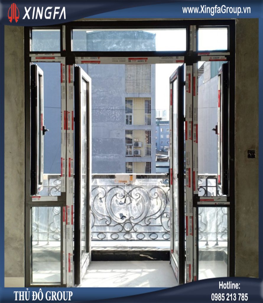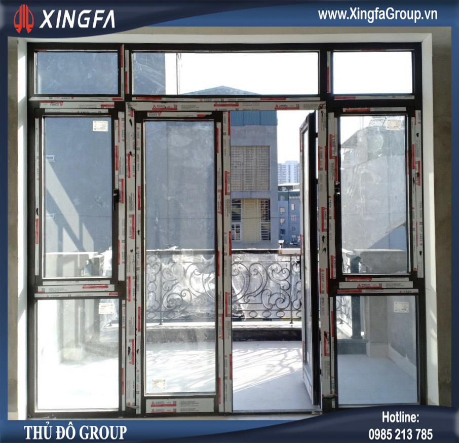 Hình ảnh bộ cửa đi mở quay và cửa sổ mở quay nhôm Xingfa kết hợp