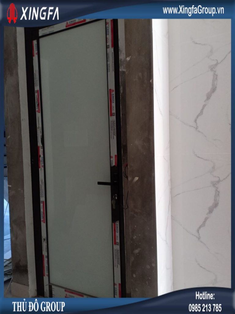 Ở bên trong công trình, Thủ Đô Group cũng lắp đặt một số mẫu cửa khác như cửa đi mở quay và cửa sổ mở hất. Cửa đi mở quay 1 cánh nhôm Xingfa với kính mầu trắng sữa được sử dụng cho phòng tắm, nhà vệ sinh. Dù là trong không gian ẩm ướt hay ngoài trời nắng mưa, cửa nhôm Xingfa vẫn đảm bảo độ kín khít cách âm cách nhiệt và chịu nước tuyệt đối 100%. Trên đều là các mẫu cửa nhôm Xingfa rất phổ biến và được nhiều khách hàng lựa chọn.
