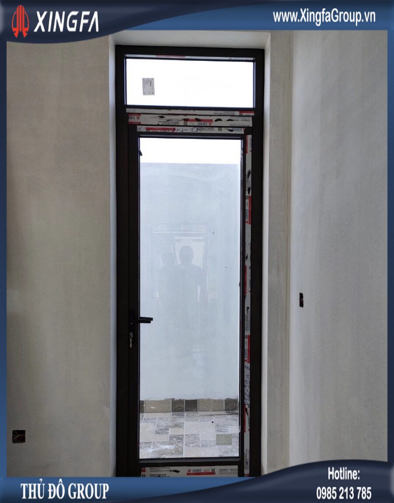 Hình ảnh cửa đi mở quay 1 cánh nhôm Xingfa và các vách kính cố định