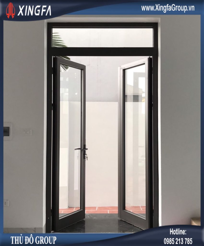 Hình ảnh cửa đi thông phòng mở quay 2 cánh nhôm Xingfa nhập khẩu