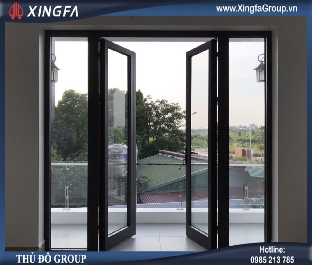 Hình ảnh cửa đi mở quay 2 cánh nhôm Xingfa cửa đi ra ban công