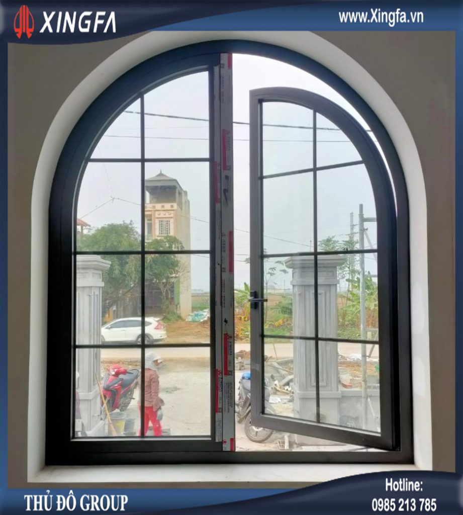 Hình ảnh mẫu cửa sổ mở quay 2 cánh uốn vòm nhôm Xingfa nhập khẩu hệ 55