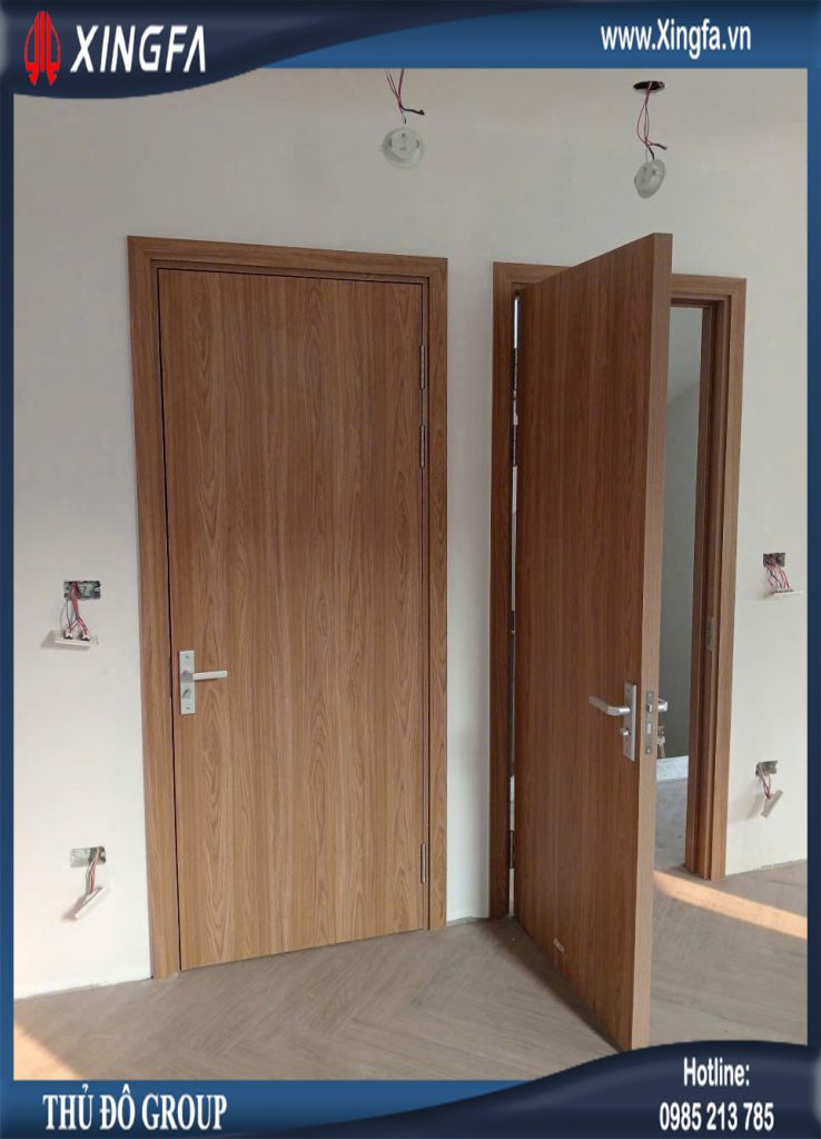 Hình ảnh thực tế mẫu cửa gỗ Huge phẳng trơn được sử dụng làm cửa đi thông phòng