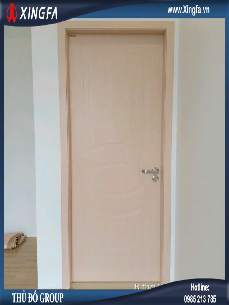 Đúc nguyên khối: Cửa được sản xuất trên dây chuyền hiện đại, đúc thành tấm panel nguyên khối. Do không có thớ gỗ tự nhiên, cửa hoàn toàn không bị cong vênh, co ngót hay nứt nẻ dù nhiệt độ thay đổi đột ngột.