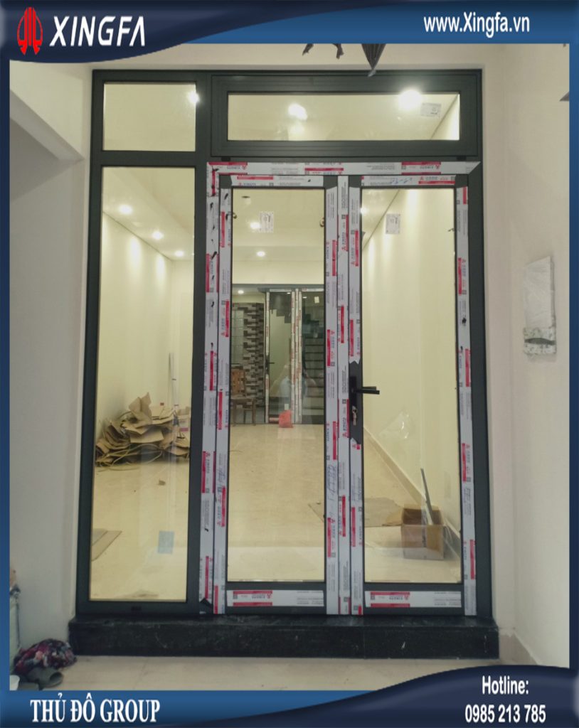 Hình ảnh cửa đi mở quay 2 cánh nhôm Xingfa nhập khẩu chính hãng
