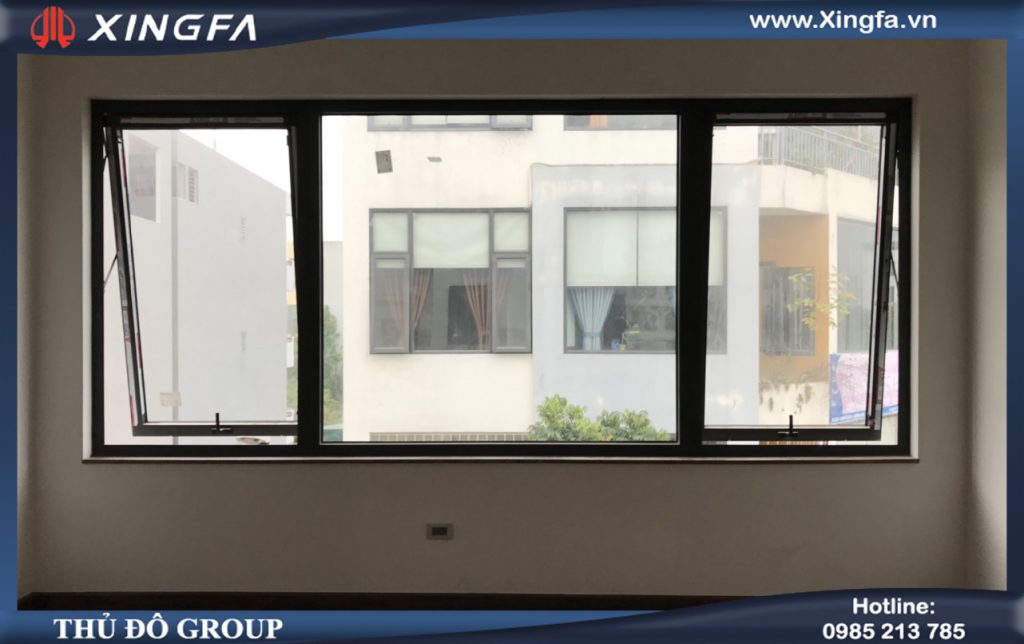 Hình ảnh cửa sổ mở hất 2 cánh kết hợp vách kính cố định nhôm Xingfa nhập khẩu chính hãng