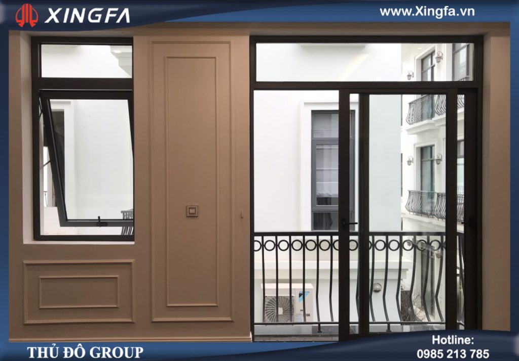 Hình ảnh cửa đi mở trượt 2 cánh và cửa sổ mở hất 1 cánh nhôm Xingfa nhập khẩu chính hãng