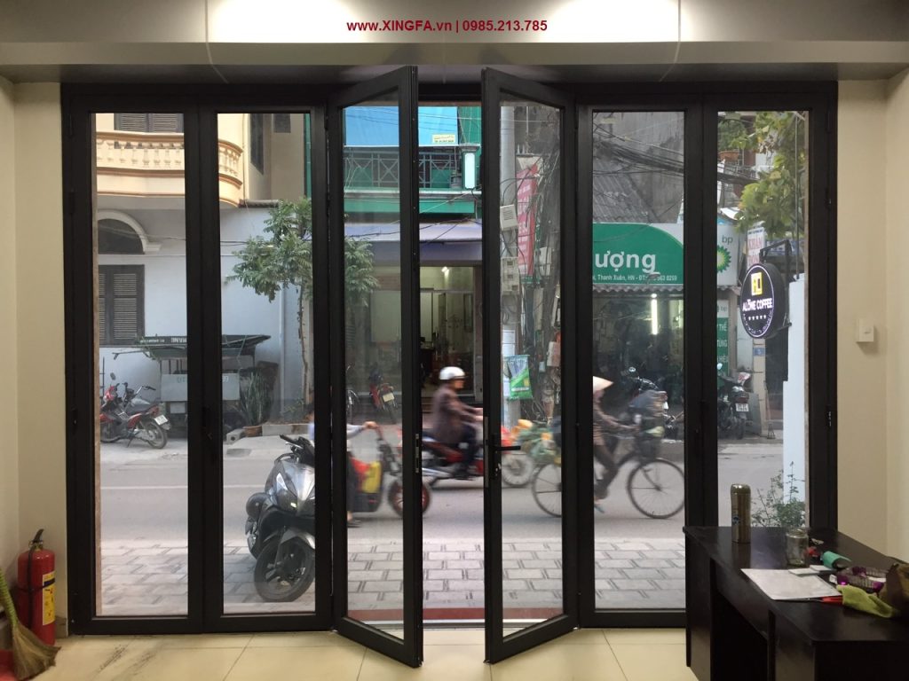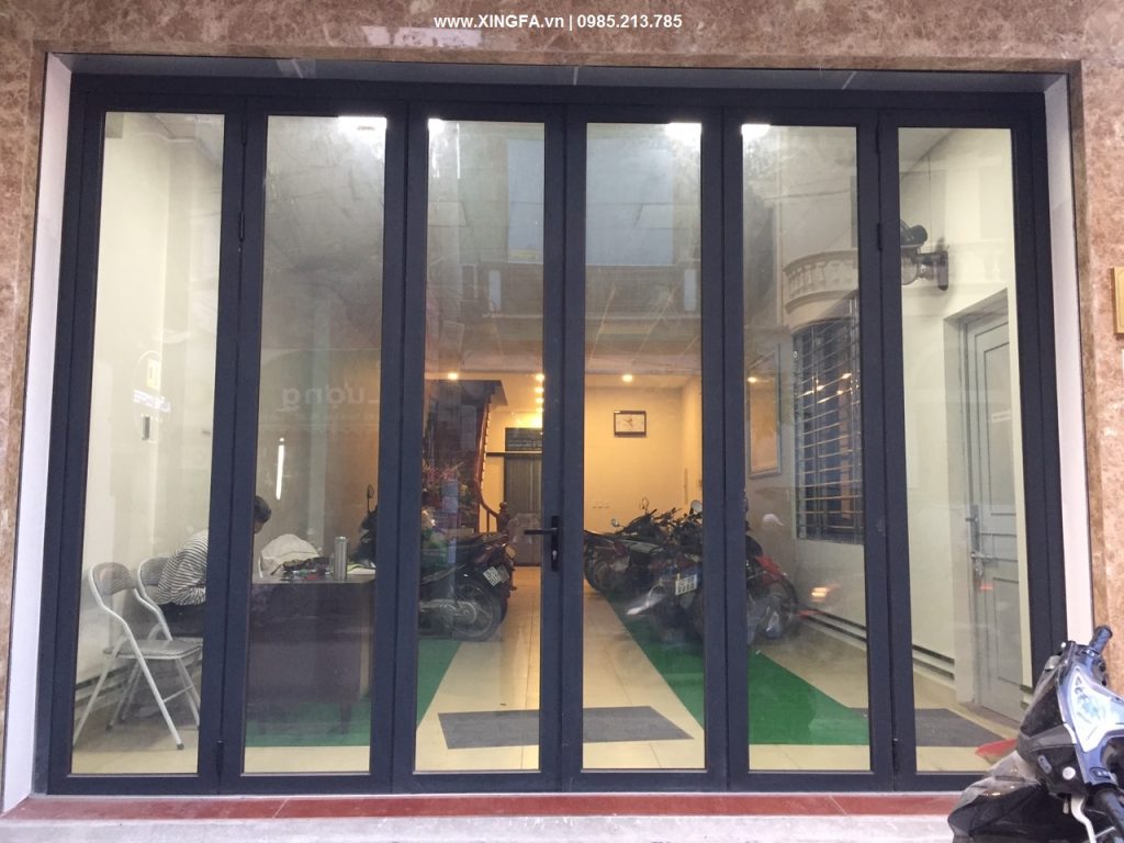 Mẫu cửa nhôm Xingfa mở xếp gấp 6 cánh dùng cho hệ thống cửa đi chính của nhà mặt tiền phố