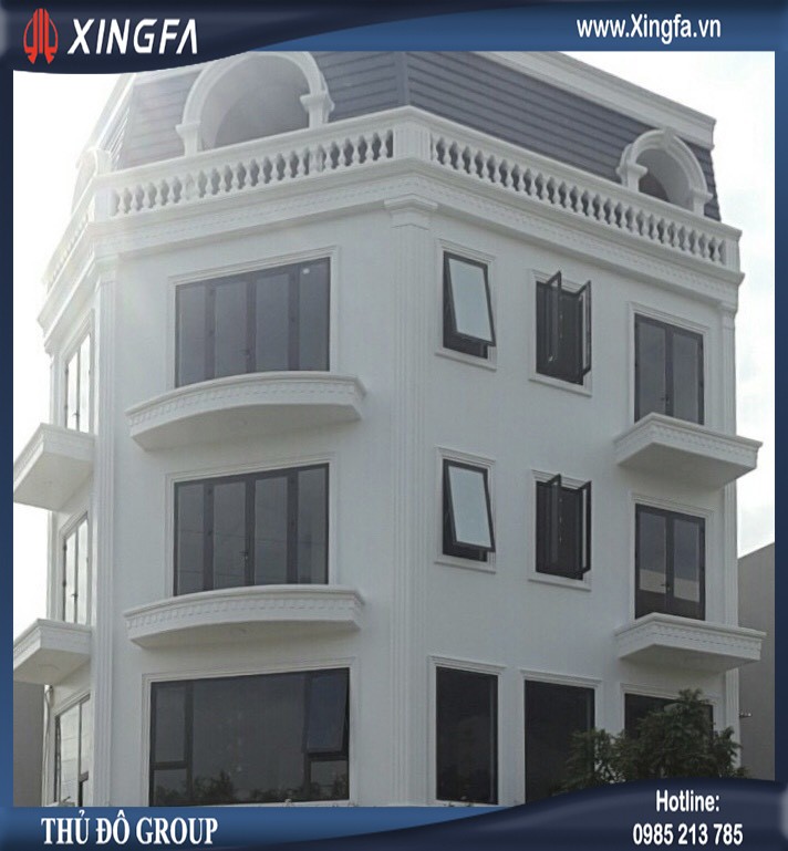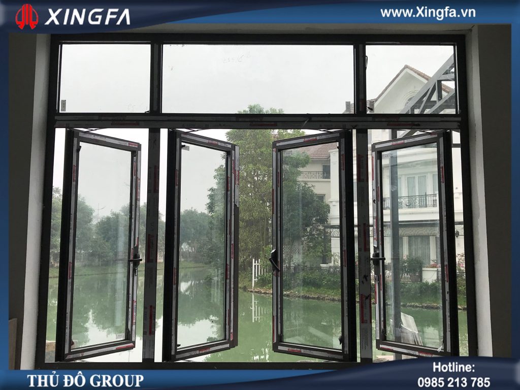 Hình ảnh mẫu cửa nhôm Xingfa mở quay sử dụng cho hệ thống cửa sổ của nhà mặt tiền phố (sử dụng thanh nhôm Xingfa hệ 55 dày 1.4mm để làm cửa)