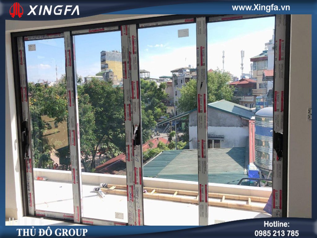 Hình ảnh cửa đi mở trượt 4 cánh ra ban công nhôm Xingfa nhập khẩu chính hãng