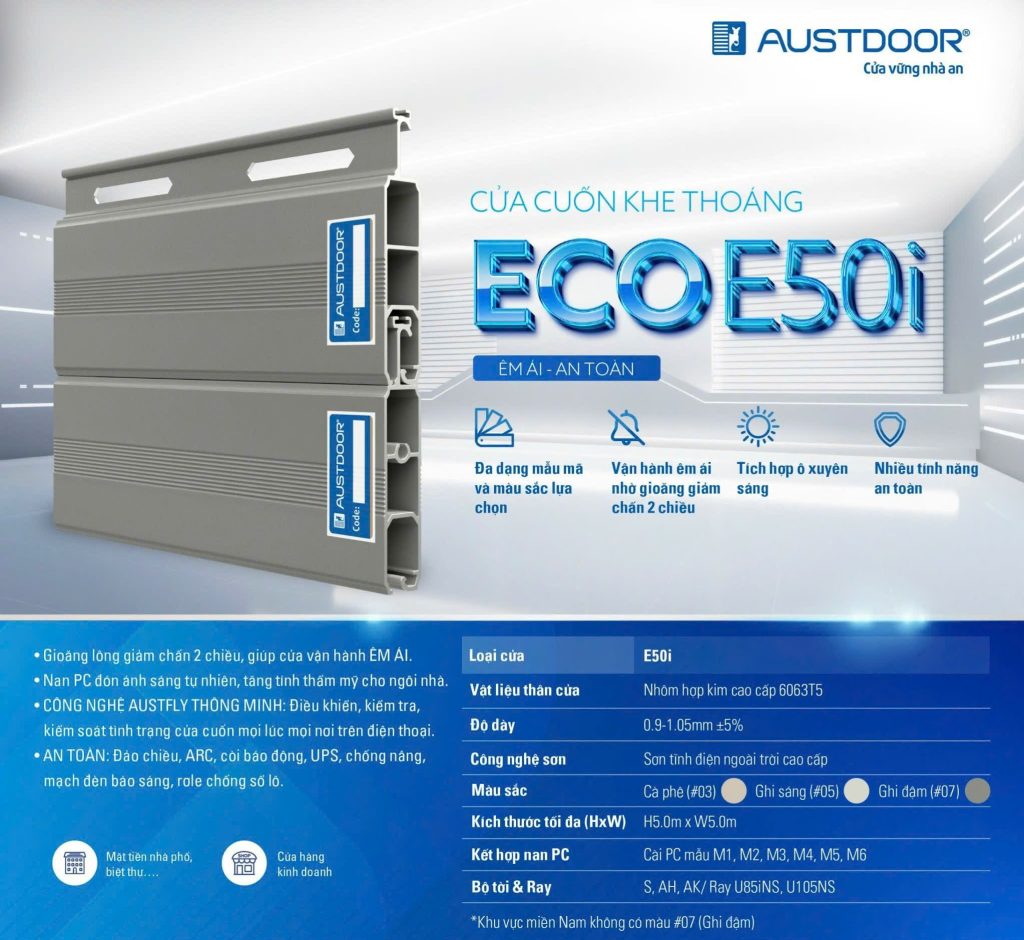 Hình ảnh và thông số kỹ thuật của mẫu nan cửa cuốn Austdoor mã E50 của Tập đoàn Austdoor