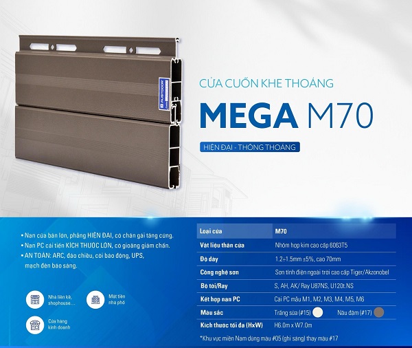 Hình ảnh và thông số kỹ thuật của mẫu nan cửa cuốn Austdoor Mega M70 của Tập đoàn Austdoor