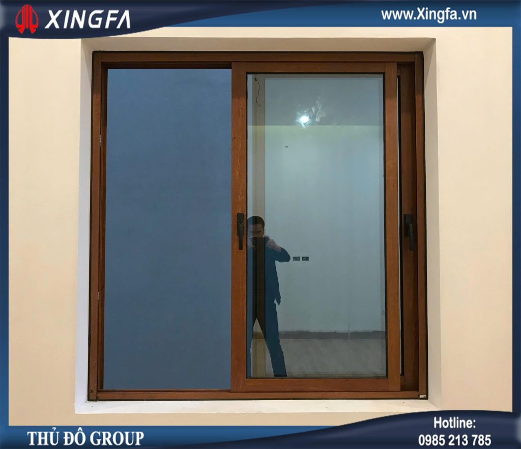 Mẫu cửa sổ mở trượt 2 cánh nhôm Xingfa hệ 93 dày 2.0mm mầu vân gỗ (mầu giả gỗ tự nhiên)