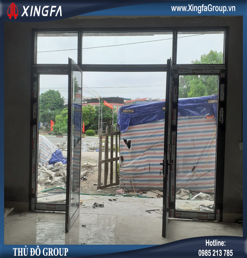 Hình ảnh cửa đi mở quay 2 cánh nhôm Xingfa nhập khẩu chính hãng